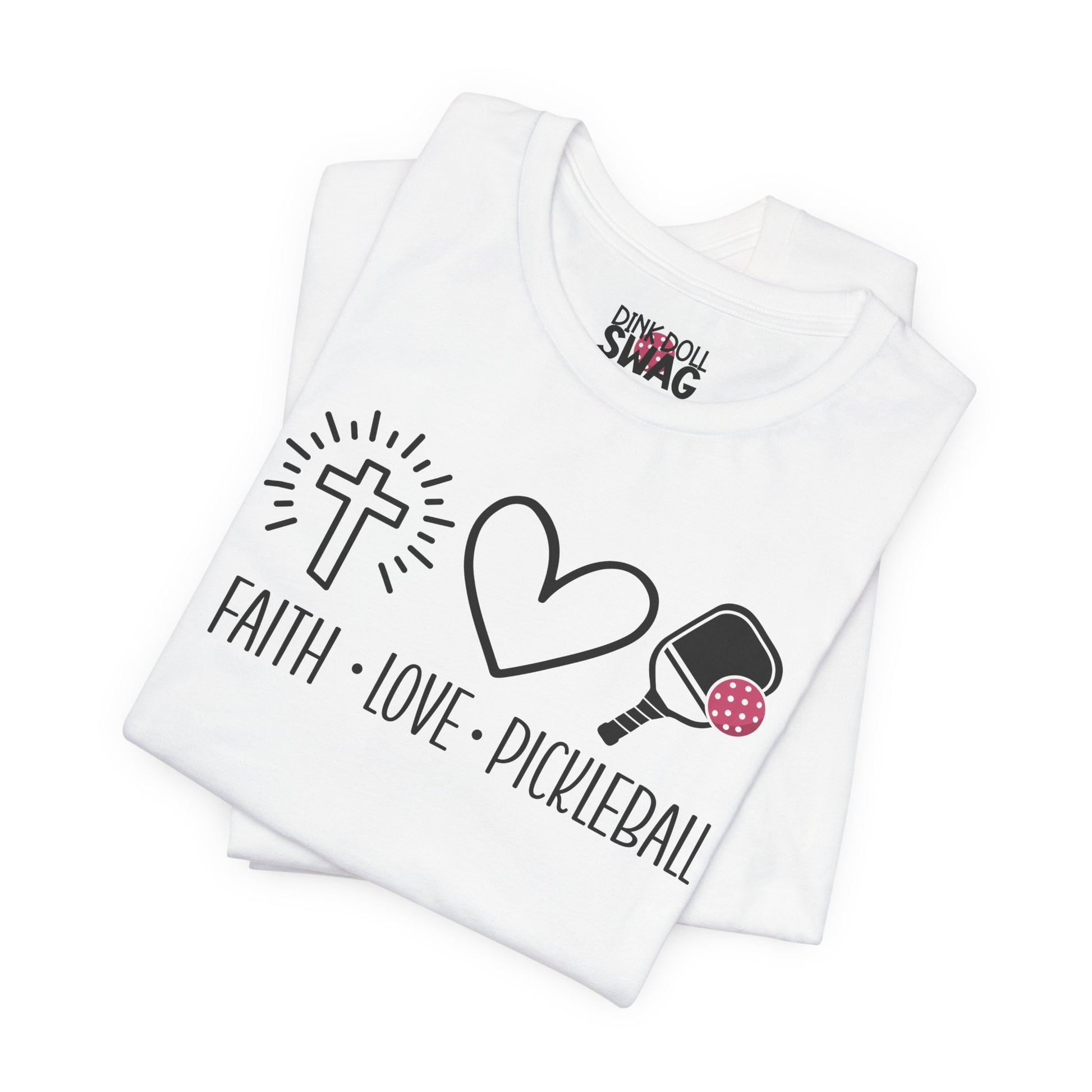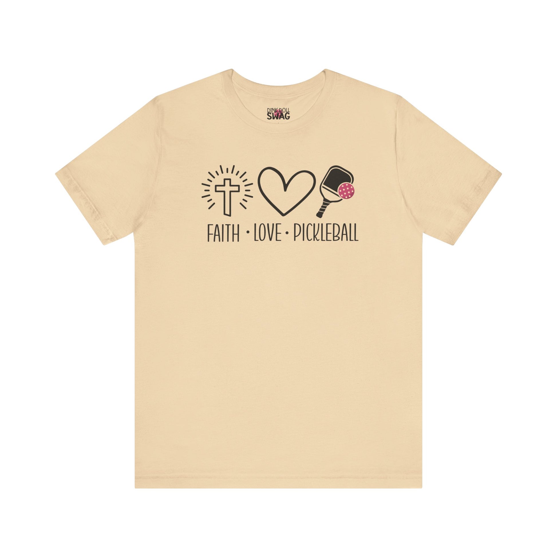 For the pickleball girlies who put God first, this tee says it all: Faith. Love. Pickleball.