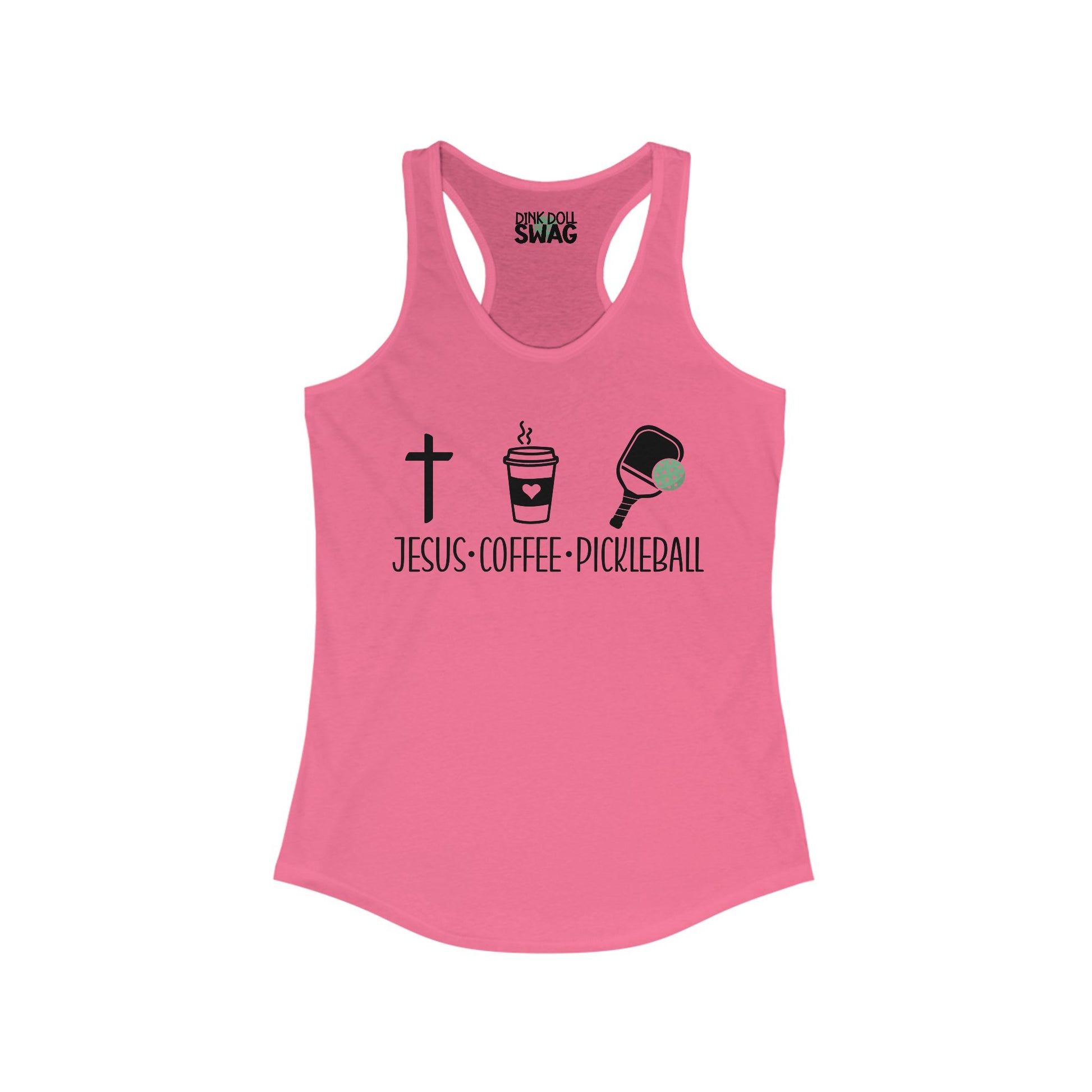 Pickleball Racerback Women's Tank - 'Jesus, Coffee, Pickleball' Design